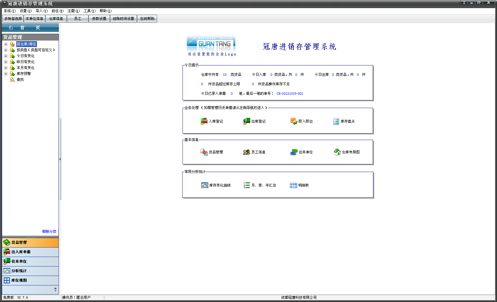 冠唐进销存软件提供简洁易用的免费版和功能全面的付费版本,是一个适合中小企业的功能强大,简单易用进销存管理软件。用户只需简单的记录货品信息和出入库单据,系统自动根据每笔出入库记录自动完成货品的库存增减,自动分类统计,统计任一时间的进仓、出仓等汇总数据,物品库存数据一目了然。【软件特点】
