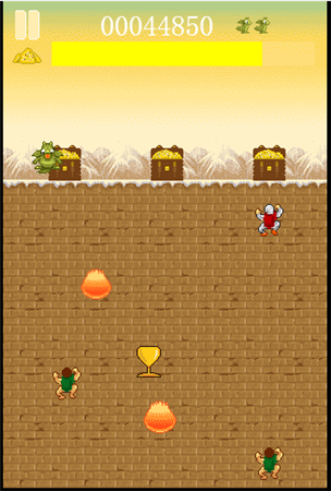 Dragon dry adulterer是一款非常休闲的简单射击的html5游戏,Dragon dry adulterer游戏中你将控制一条恐龙,喷火球砸下爬上城墙的敌人,玩家只需要控制左右就可以进行游戏,非常的有趣。