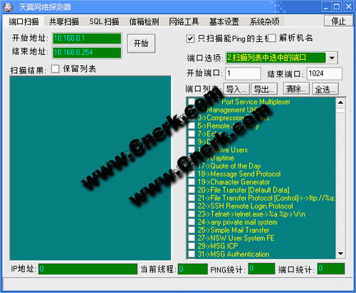 天翼网络探测器网络探测器可以根据IP地址追踪对方的所在位置,提供国内163/169/宽带网的大部分地址,最精确可追踪到哪一家网吧、哪一所学校及哪一个单位等!IP地址数据库每周升级一次,确保能查询到国外内的绝大部分IP!扫描远程主机(IP),并探测出远程主机所开放的端口。获取本机IP地址和计算机名称。获取远程计算机时间。国际域名信息查询。PING功能。域名或IP互转