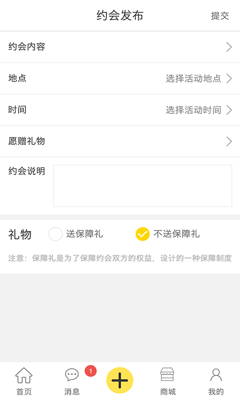 【约会意向】秀出你的约会要求目标,让合适的人找到你。