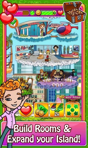 《梦幻天堂 Hotel Island:Dream Paradise》是一款十分好玩的休闲类模拟经营游戏。在游戏中,你的任务是建设、经营管理你的温泉旅馆,包括提供住宿、餐饮、商场和泡温泉等各项服务。你还能用你的收入来装饰你的旅馆。等到你的温泉旅馆名声在外后,还能吸引各类社会名流光临。