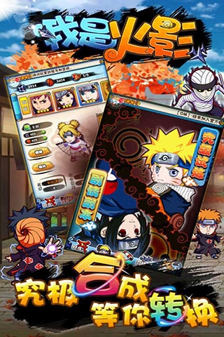 《我是火影》是一款妙趣横生的卡牌、城建游戏,上百名Q版忍者形象,大大增强了原著的人物性格。数百种原汁原味的忍术将你的战斗爽快感提升到极致!踏入忍者世界后,你将成为传说中的火影。我是火影还原《火影忍者》主线剧情,引入上百种Q版忍者卡牌角色,大大增强了原著的人物性格。玩家可以以多种经济建筑、战斗建筑塑造忍村,忍着角色搭配多达200个忍术随意搭配进行战斗,400种组合技丰富阵容,十拳剑、七忍刀、仙人之袍等超过100种装备,而忍者间更引入5大属性相克规则。
