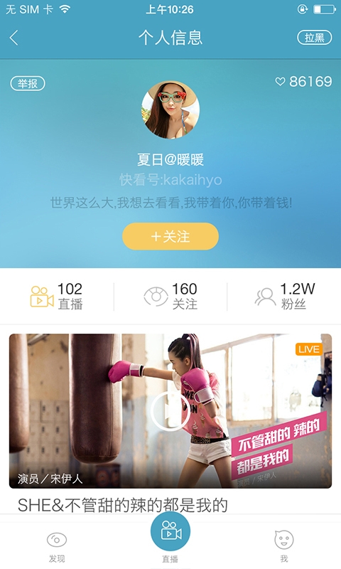 用快看,可以直播生活中有趣新奇的场景和活动,比如一场别开生面的婚礼、一段见闻奇特的旅行、一位街头艺人的精彩表演、一段浪漫的当众表白、一场明星大咖的见面会、一次改变世界的产品发布会等等。