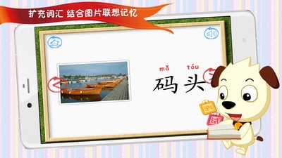 扩充词句:从字到词,从词到句;从图到文,从形到字结合图片联想记忆,并配有拼音标注让孩子迅速掌握更多的字词。