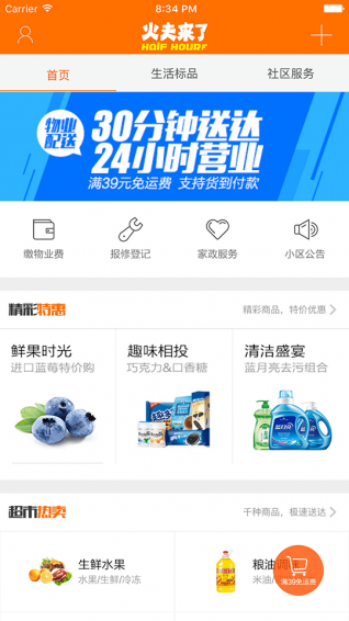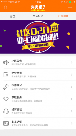 火夫来了app是一款依托与O2O服务平台的社区服务应用软件,通过这款软件,我们可以直接享受在线配送、业务缴费、投资、家电、小区公告等服务功能,体验高效、便捷的优质生活。