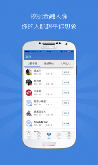 赢贝-投资者的社交平台,为金融用户建立一个私密、专属的互动圈子,与中国最大的财经门户网站—和讯网达成深度战略合作。加入赢贝,一起赢呗!【软件特色】