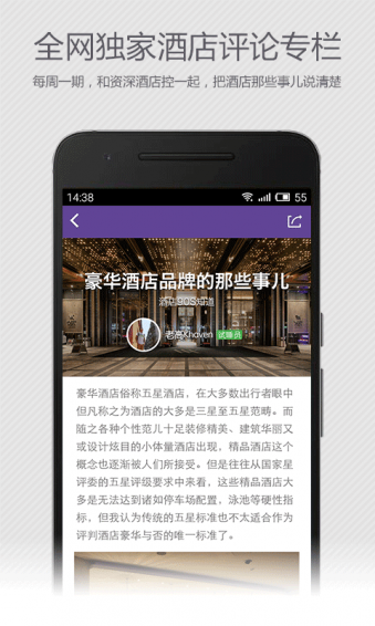 全网独家酒店评论专栏,每周一期,和资深酒店控一起,把酒店那些事儿说清楚,让你更懂酒店。每周精选专题推送,紧跟行业热点、旅游热事,人气目的地,给你最全面的住宿预定指南。