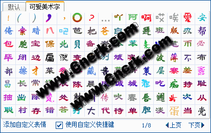 可爱的美少女QQ字体 V1.0 简体中文绿色免费版 可爱的美少女QQ字体总共包含了887个色彩绚丽形状优美的QQ字体,只要本QQ字体包中包含的文字都可以再聊天过程中一输入普通汉字的方法输入,本QQ字体包采用了EIP的文件格式,只要你安装了QQ2005及以上版本只需要双击就可以进行安装