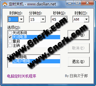 盗链自动关机程序可以指定时间关机,可以按照用户的意图实现: 1.指定时间关闭系统 2.指定时间重启计算机 3.指定时间注销计算机 4.并可自行断掉计算机电源,也就是彻底关机 5.也选择可以由用户断电……