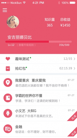 答题等级越高,奖励越丰厚。这里有丰富的题库系统,给你带来不一样的答题体验。轻轻松松赚外快。这里有一群爱好学习,积极上进的小伙伴在等着你呢!