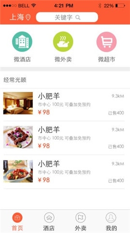 二、下载“微生活-您身边的酒店、外卖专家”ios用户版实现点外卖、订酒店功能。