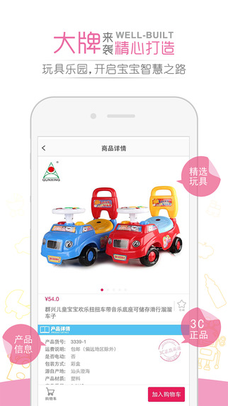 淘竹马app苹果版是目前国内最大的B2C玩具垂直电商平台。淘竹马app苹果版是为妈妈们量身打造的一站式玩具购物平台。淘竹马app苹果版与千万妈妈一起专享特卖优惠,畅享玩具乐趣。淘竹马APP是一款专为iphone、android用户量身打造的一站式玩具分销软件,不仅具有搜索、收藏、下单、支付、查询、物流跟踪等功能,还提供遥控/电动玩具、早教/音乐玩具、过家家玩具、童车玩具、益智玩具等众多玩具种类,供您挑选,应有尽有。已经有数万家玩具厂商入驻,数百万位妈妈在这里买到了更多更好的优质玩具。严格把控产品质量,真正做到高品质低价格,让宝宝们玩的开心,妈妈看着放心。