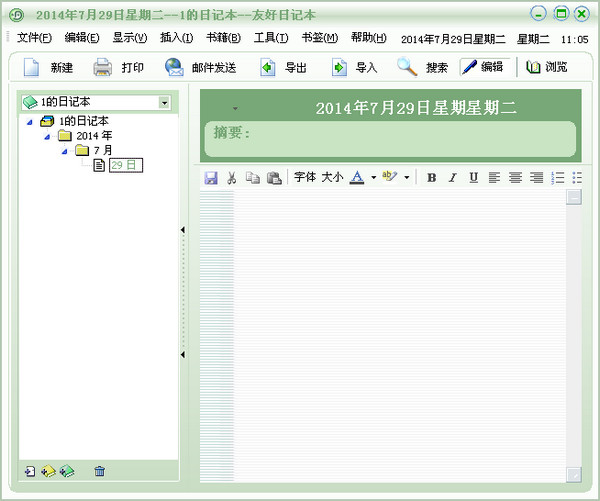 功能强大漂亮的日记软件。平时,经常有一些东西要写,工作中要写一些工作日志,有一些想法要整理,有一些资料要收集,我都希望有一个这样的软件来实现,这就是KindDiary的目的...【软件特点】