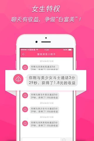 蜜桃语音是一款语音了解类软件,语音签名,声音好不好听,听力才知道;聊天有奖励,离线接听让你和她连接更加紧密。在陌生的城市,你孤单又行色匆匆。在熟悉的角落,你沉默又有千言万语。