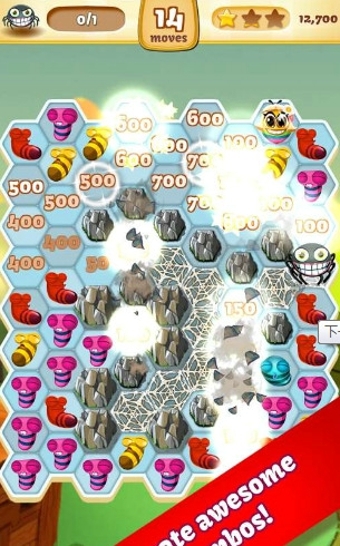 简单,上瘾的游戏!匹配又经过蜜蜂连接的一个丰富多彩的线发动连击!通过Beeland在6个不同的游戏模式和120+上瘾的水平发挥你的方式!