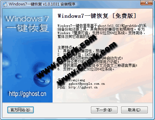 Windows7一键恢复是基于ghost(v11.02)和grub4dos的系统备份和还原工具,具有良好的兼容性和易用性。专为Windows 7量身打造,支持32位及64位系统。支持简体、繁体及其它语言的系统。默认备份当前系统盘到指定盘的GGHO目录下,镜像文件名为SYS.GGH。