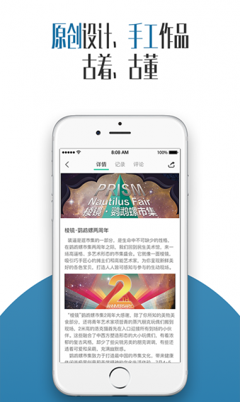 公司成立于2013年初,独创“电商+市集”的020运营模式,目前正以一日千里的势头迅速发展。我们网罗“复古、手工、原创、海外回流、独立设计”概念的非标准化商品,打造高溢价高稀缺性的C2C电商平台,以与众不同的商品满足日益提升的个性化购物需求;同时重塑市集文化,把用户带到线下,充分享受购物体验与乐趣,购物的同时还融入了音乐演出、互动游戏、等丰富多彩的娱乐环节,每次市集都宛如小型嘉年华。我们提倡的是一种全新的文化休闲方式。