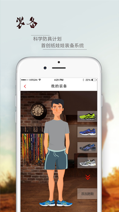 独创基于纸娃娃系统的装备管理模式,一站式管理所有运动装备,轻松添加跑鞋和压缩衣,记录使用情况,科学更换跑步装备。