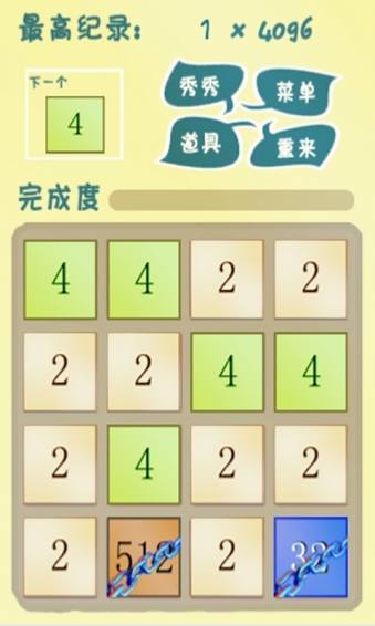 4096的奇葩:朋友都说这个版本好玩!个人设计,错过遗憾哦!游戏性强,感受你智商上的优越感!功能上也增加了保存进度和重新加载的功能会让你事半功倍!你的劳动成果永远不会浪费!!清新的规则,极富挑战的体验等着你呦!