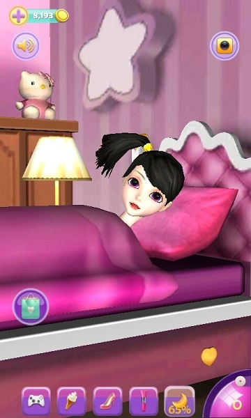 会说话的小女孩破解版是一款非常简单的养成游戏,玩家将亲自照顾一个小女孩的起居,为她准备饭菜,给她换上美丽的衣服,哄她睡觉,还能直接通过触屏和她互动,就像自己真的有了一个女儿一样。