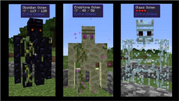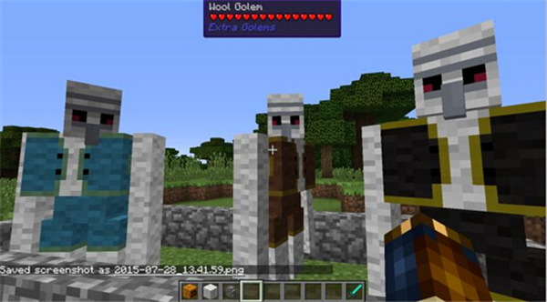 我的世界更多傀儡Mod下载分享,Extra-Golems更多傀儡Mod是3d沙盘游戏《我的世界1.7.10》的一款新物品类模组。这个Mod在游戏中增加了更多的傀儡,20种用平凡的方块制作出的傀儡,从木头到玻璃到钻石到地狱砖应有尽有!【软件功能特点】