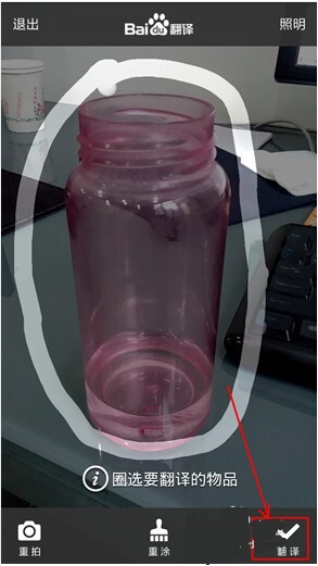 我现在就拍摄一下我正在用的水杯。拍完后,圈出水杯,再点击翻译,就能看到翻译结果啦。