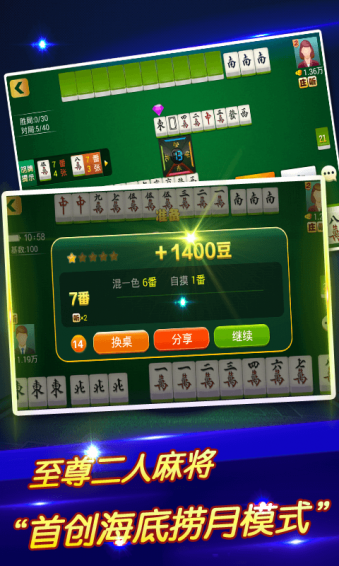 微乐二人麻将是一款麻将游戏。游戏规则玩法多样。规则以国标麻将特色为主,并加以创新打造出全新的胡牌规则,您可以通过发到您手中的牌,发挥您的智慧随意组合,随意变化,来尝试一下吧!