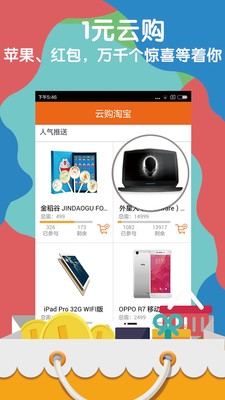 天天1元云购,一元淘宝全场商品,一元淘到惊喜大礼,购物更欢乐更刺激更惊喜。