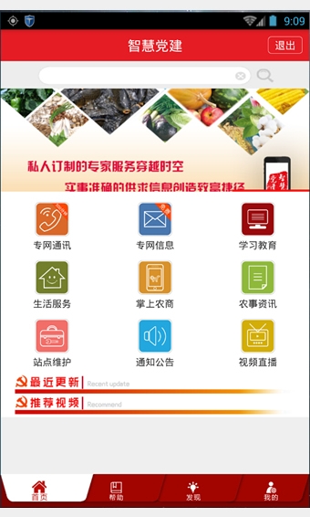 河南智慧党建客户端整合了远程教育、农业大数据、农产品交易、便民信息服务等内容,通过视频、图文、推送、短信等多种信息传播形式服务广大党员群众。为进一步推进“互联网+党员教育”服务基层群众,智慧党建手机客户端增加了“手机专网信息服务”,各级信息员可通过专网信息服务,将信息快速推给所需要人群;而且“手机专网信息服务”自动甄选、汇聚各类网络信息,创办了“惠民信息超市”,方便干部群众进行信息获取和信息沟通。
