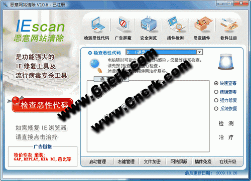 恶意网站清除 V13.6 简体中文绿色特别版 1、清除自动弹出或转入搜索页的恶意网站。