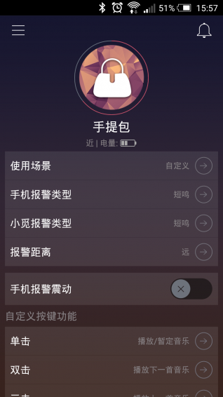 距离报警:可以设定手机和物品的报警距离,超出距离会同时报警,避免物品丢失;