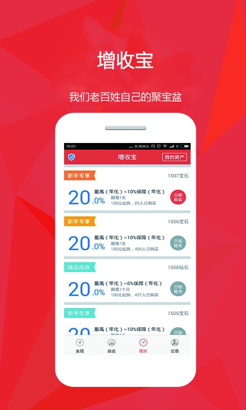 一、 理财篇----增收宝火热上线,前期免收服务费,快来抢购吧!【新手礼】新用户豪礼相送,年化收益高达10%