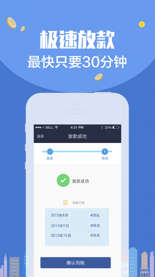 快速:5分钟完成申请,实时确定信用,最快10分钟放款;
