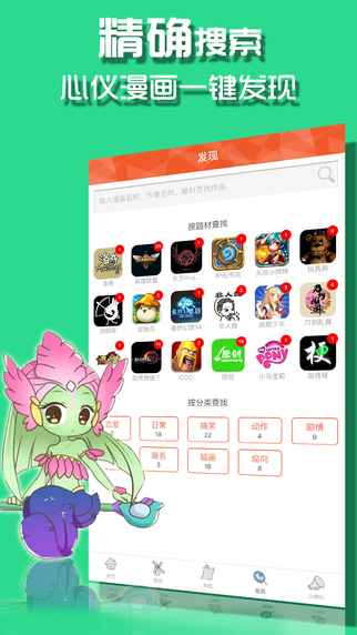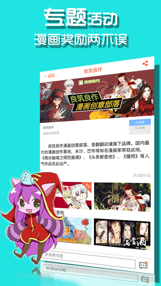 界面操作界面风格简约时尚、功能齐全、画面清晰、操作简单!点击即可轻松进入游戏漫画世界!