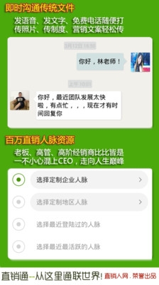 直销人从此拥有自己的移动互联网社群组织、让直销人把市场做得既轻松又体面、让直销人更加得伟大!