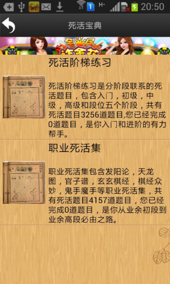 3.死活宝典:死活宝典是围棋教育的扛鼎之作,当前最强大的死活库。收录了7000+道死活题。从入门级到专业级,从古代死活经典到现代职业高手死活题。包括发阳论,天龙图,官子谱,玄玄棋经,棋经众妙和鬼手魔手等专业死活集。是您提高围棋棋力的良师益友,是你从业余10级到业余5段的必由之路。