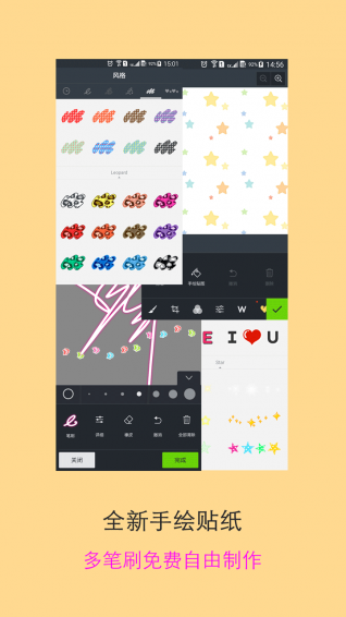 多笔刷免费使用,供您制作不同风格的贴纸,哈!原来我也有艺术细胞!