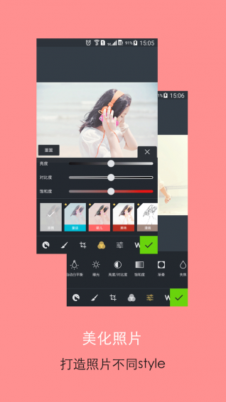 裁剪、旋转、锐化、曝光等基础操作一应俱全;多种滤镜特效和水印供您自由选择,打造照片不同style!5大类型超级神器笔刷,免费供您无限使用!