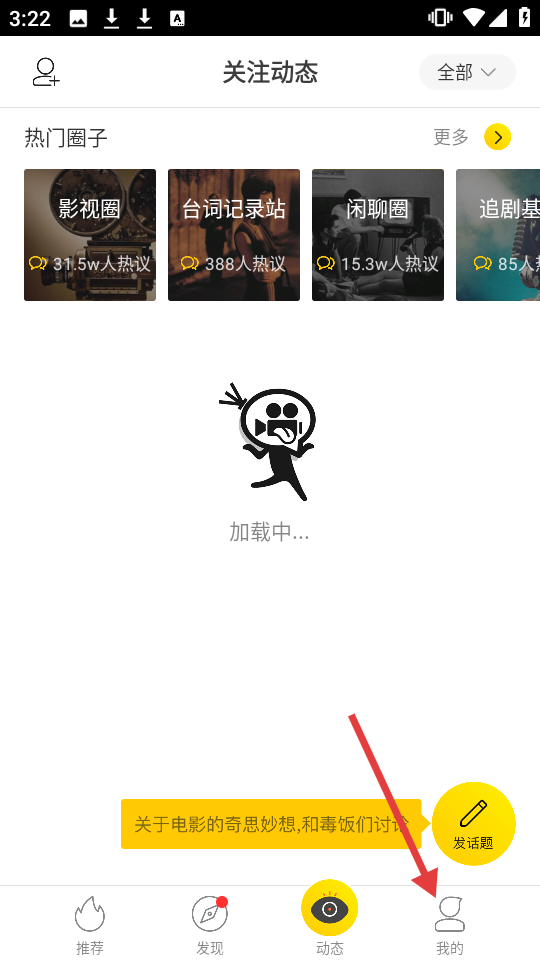 1. 在动态关注页面,点击右下角【我的】,即可进入个人页面。