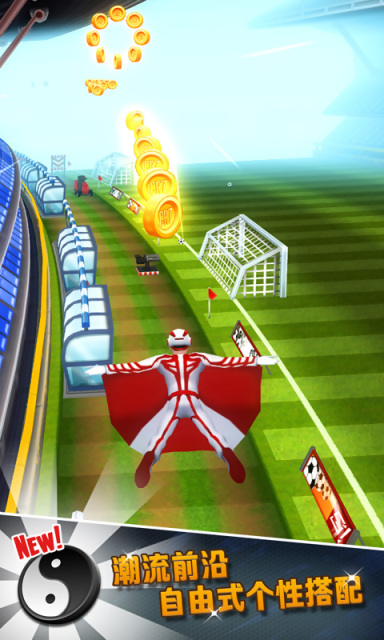 承载亿万粉丝的期许,首款C罗代言3D跑酷游戏《C罗快跑》强势来袭!帮助C罗逃脱狗仔皮特的追击,寻找秘密路线,尽情跳跃、极限闪避、擦轨连击!更有限量版C罗亲笔签名足球等你赢!