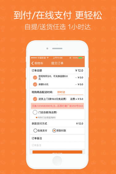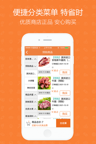 生鲜代购:动动手指,简单填写需求清单,轻松提交,1小时享配送到家。