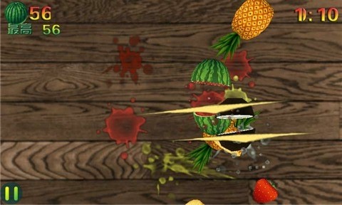 欢乐切水果是一款益智休闲的手机游戏,用你的手指切各种各样的水果,享受醇正的果汁! 如果你快乐,快来欢乐切水果;如果你不快乐,更要来狠狠地砍切水果;这里不只是消耗你一片蔬菜叶子的能量,更能让你心满意足; 目的只有一个__砍水果!屏幕上会不断跳出各种水果--西瓜,凤梨,猕猴桃,草莓,蓝莓,香蕉,苹果等等; 在它们掉落之前要快速的全部砍掉!千万别砍到炮弹;