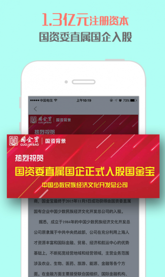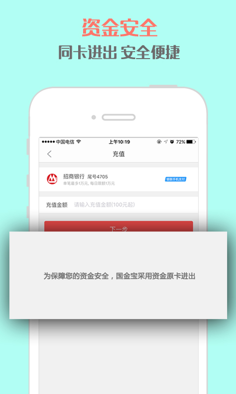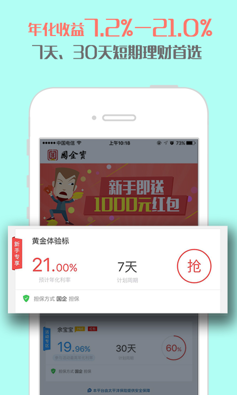 国金宝app专业的投资理财平台,多款优质产品任选,年收益最高可达21%!100%本息保障,是您投资理财的好帮手。【软件特点】