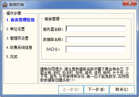 一、系统管理系统管理模块主要分四个:1、系统配置 2、系统高级参数设定 3、初始化楼房信息 4、管理员管理。其中,系统配置主要针对整个系统第一次的统一化操作;系统高级参数设定只为方便系统前期调试及配置用,在系统正常开通后则会在配置中关闭该功能;而初始化楼房信息,则是对统一入住前,对所有标准楼房信息的统一初始化。剩下的便是管理员管理,管理员管理又将包括:超级用户登录、普通用户登录、用户密码修改、用户管理、用户权限划分、退出系统六个部分。
