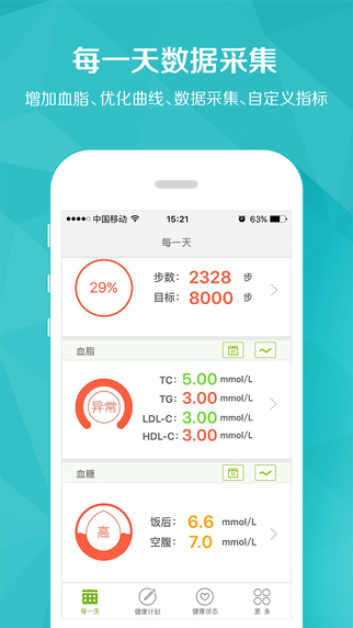 “健康管理、慢病干预、家人关怀、专业指导”是开云健康的主要功能。开云健康通过蓝牙连接血压计、血糖仪、体质仪、运动手环等健康检测设备,采集数据进行分析,提供运动、饮食、心理等方面的指导,协助养成健康生活习惯。 在微信上就能看到家人的健康数据,并提供专家热线进行健康咨询和指导。
