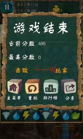 魔幻消消乐是一款非常好玩的三消游戏,各种元素,风、火、雷、水、石、木,各种超级炫的特效! 游戏还提供有三种游戏模式:争分夺秒,这种模式就是传统的三消游戏模式,想怀旧的玩家请务必来试试自己的手速吧。死亡巨石,在你消灭元素的时候,天上可是会掉下致命的岩石堵住你的路,这时候你就要使用炸弹工具或者组合出的上位元素把岩石炸开吧。地心探险,在屏幕下方的岩层会不断上升哦,快使用道具或者上位元素把岩层炸开获得更多生存空间吧.游戏分数会通过网络传到排行榜上哦,快来比一比谁的分数高!游戏中获得的道具少?没关系,来商场补充道具吧,不用一分钱,只要每天分享游戏和给游戏点赞,就有好多金块送哦,土壕还不赶紧去买道具爆个爽,排行榜第一名就是你的啦! 游戏中可以使用很多道具。你能在每局游戏结束的时候获得金币。分数越高获取的金币越多。