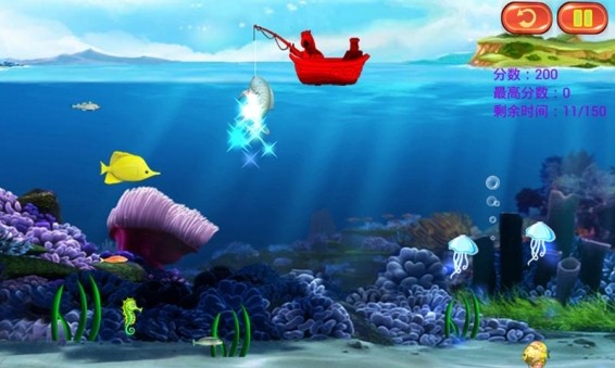 快乐钓鱼是一款有趣的钓鱼游戏。你可以一次钓起多条鱼哦,玩家将体验到前所未有的爽快感.利用重力感应移动船只,同时敏捷的放线,拉线,是成功的关键.快来比一比吧,你的最终得分是多少?