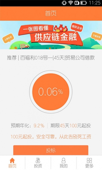 一个安全可靠的投资理财平台。100元起投,年化收益8%-12%,后英集团控股子公司,后英集团总资产130亿,年纳税额10个亿,值得信赖。