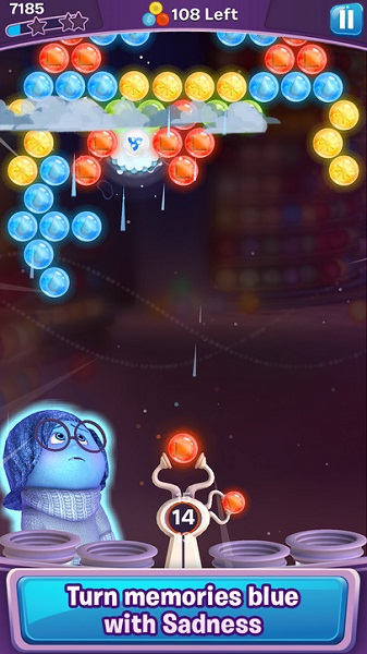 头脑泡泡特工队破解版是一款根据迪士尼动动画电影改编休闲类消除游戏,这款游戏拥有精致的画面,丰富有趣的内容设计,以及简单易上手的游戏操作,玩家只需要将泡泡发射出来,与同色的气泡进行消除,从而完成整个关卡的的人物,体验非一般的智力挑战。