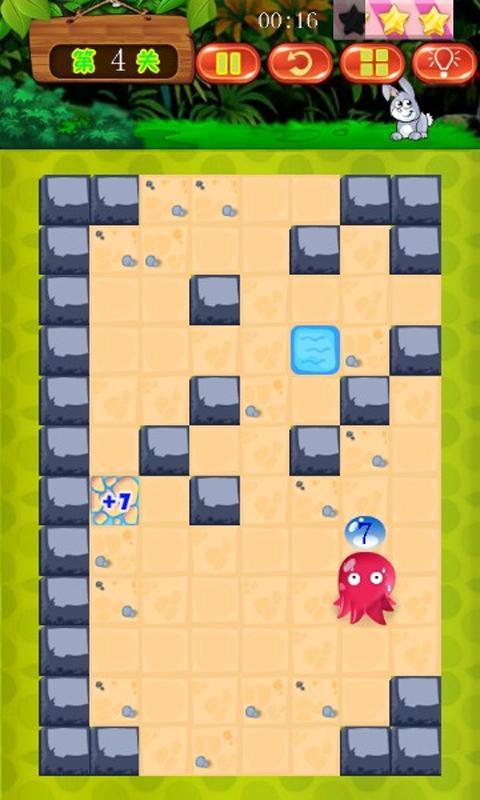 大家都看过人在囧途的尴尬,其实鱼也一样......离了水的鱼很是悲催,小章鱼从大海里上岸游玩,结果给迷路了,这下可急坏小章鱼了,再找不到水可就活不成了。请大家帮助它用最短的路程到达水源。玩法简单,只需在地图上点击你想到的位置,小章鱼就会移动过去,移动之前小心计算步数是关键哦。优秀的游戏引擎造就超一流的画面和质感,动听的音乐伴随你度过一关又一关难题,后面的关卡会越来越难哦,真的不是那么容易通关的。